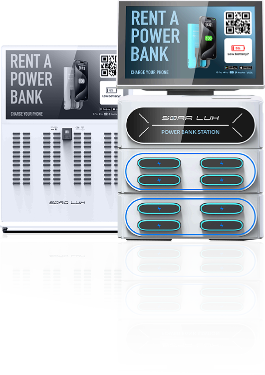 Scan the QR code with your SoraLux app, and a power bank pops out. Ready to go!